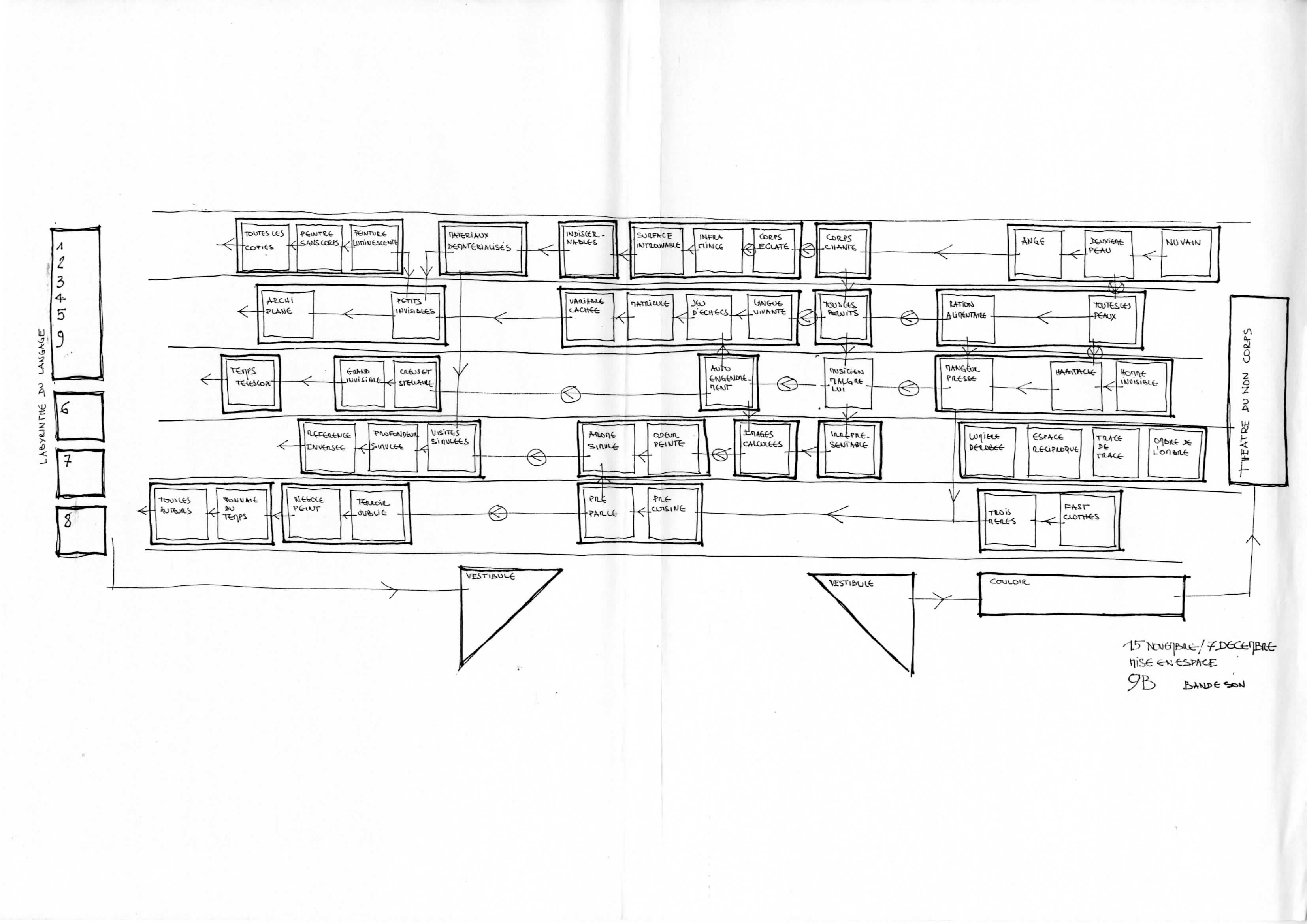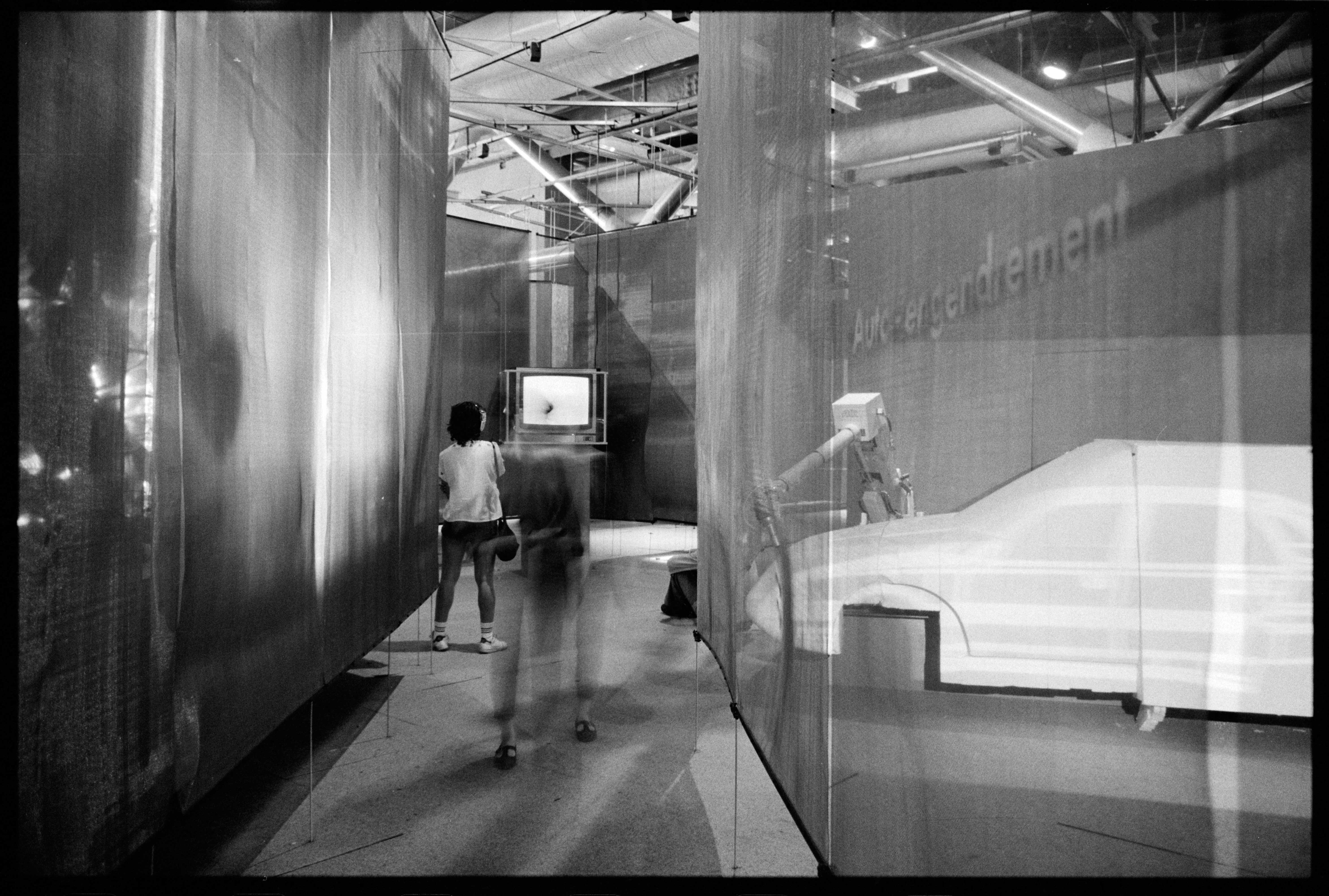The architects Philippe Délis and Katia Lafitte developed an experimental scenography based on the notions of immateriality and indistinctness. The structure of the exhibition was labyrinthine with no specific path imposed. Suspended screens of multi-layered metal mesh that differed in gradients of transparency divided the space into partitions.