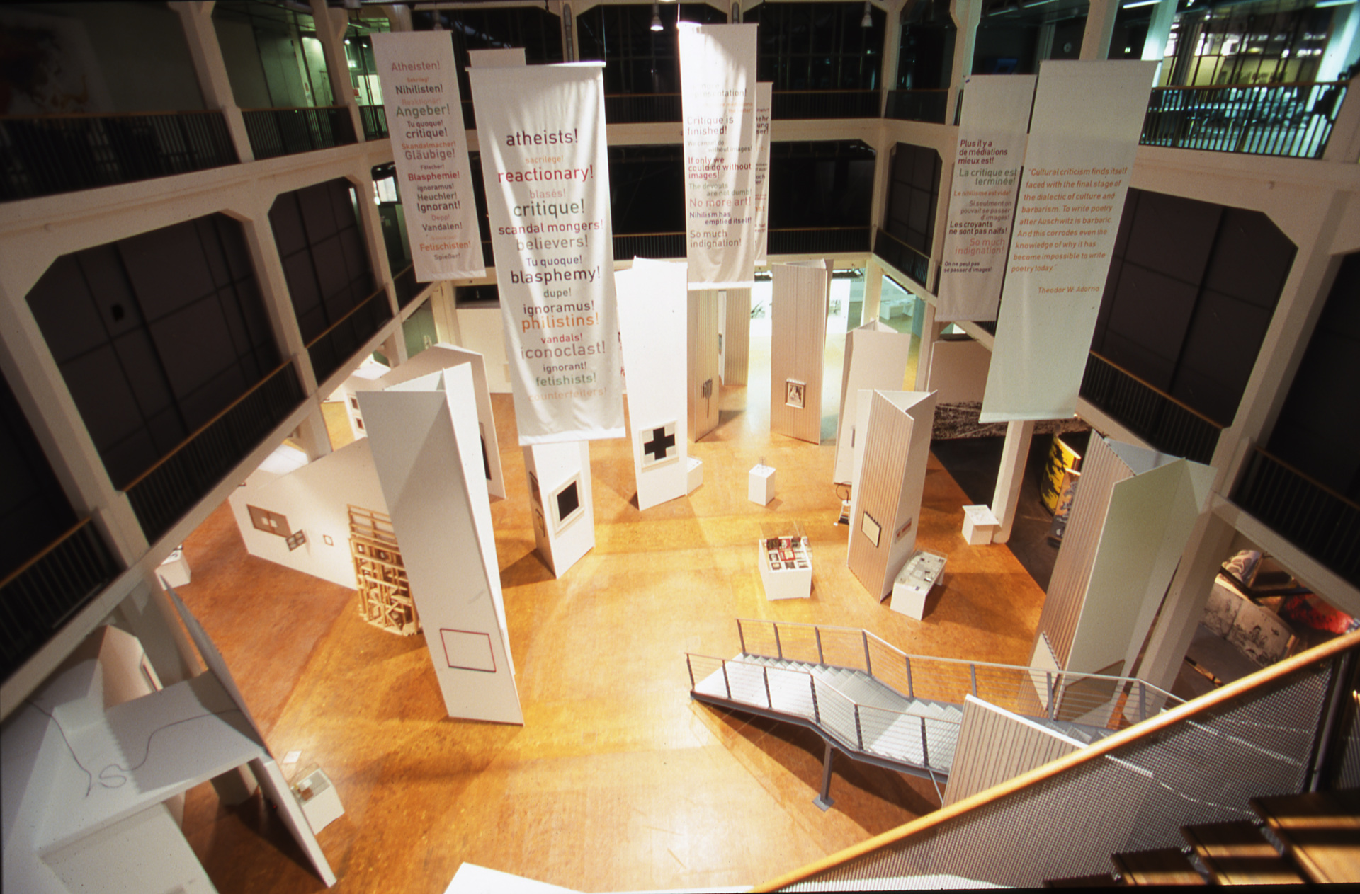 The large-scale exhibition Iconoclash focused on a crucial issue; that of representation in its various forms across disciplines and cultures, along with the turbulence it sparks. The exhibition itself was not intended to be iconoclastic, but rather to present a synopsis of scientific exhibits, documents, and artworks about iconoclasms. It was a thought experiment that had assumed the form of an exhibition, a so-called Gedankenausstellung.